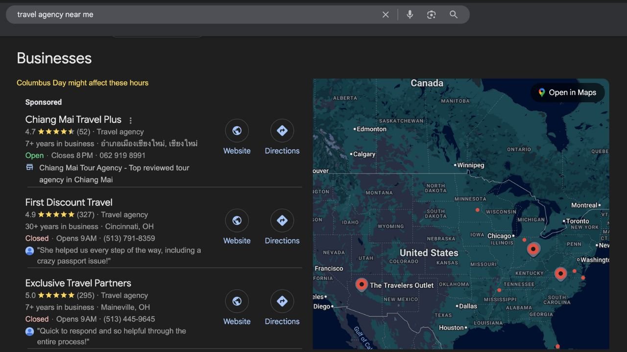 - Keyword in “ ” = Phrase Match: For example, “travel agencies near me”. This means your ad will feature for search terms such as best travel agencies near me.