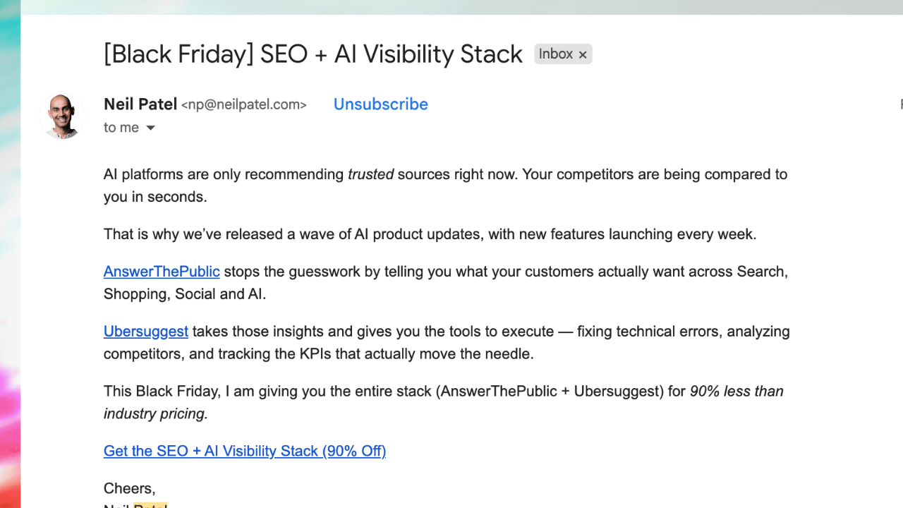 (Screenshot of an email sent as part of an email marketing campaign)
