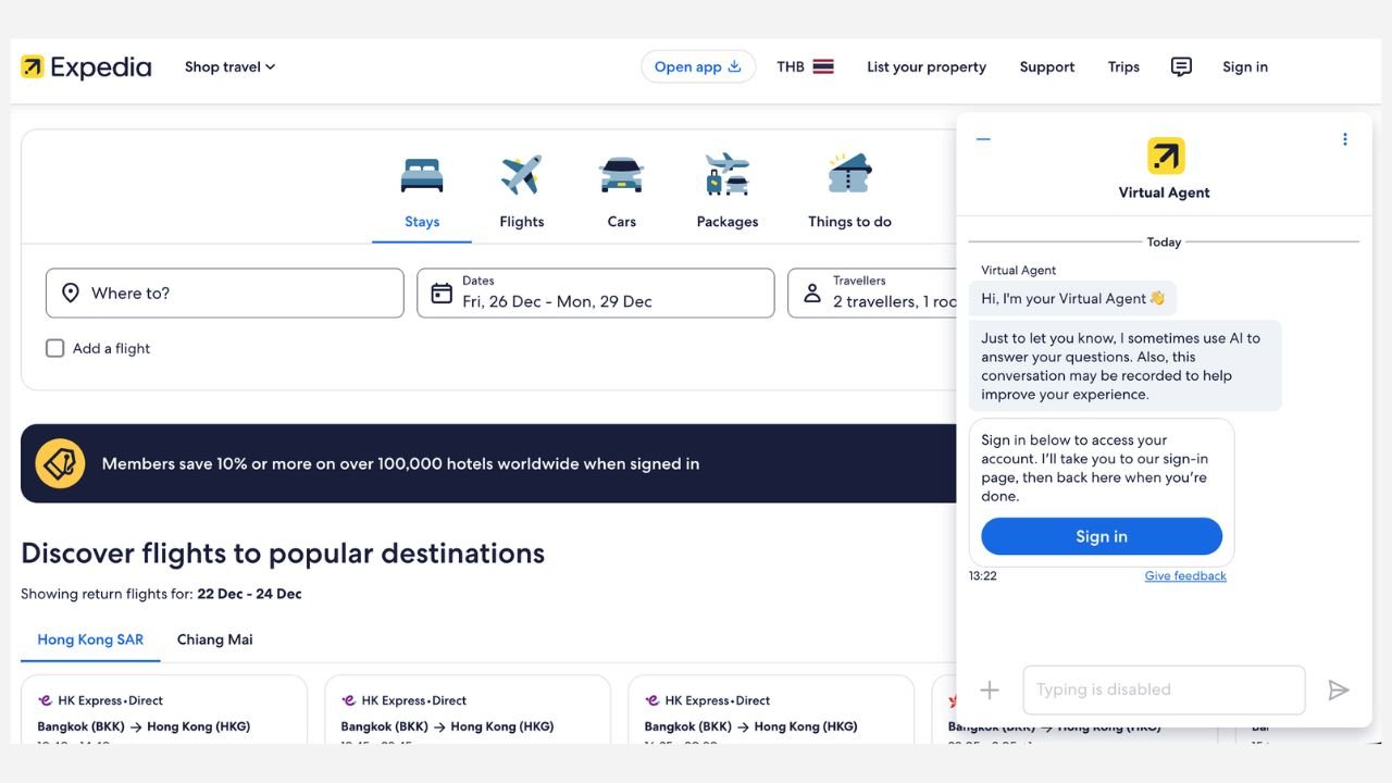 (Example of a travel brand using a Chatbot)