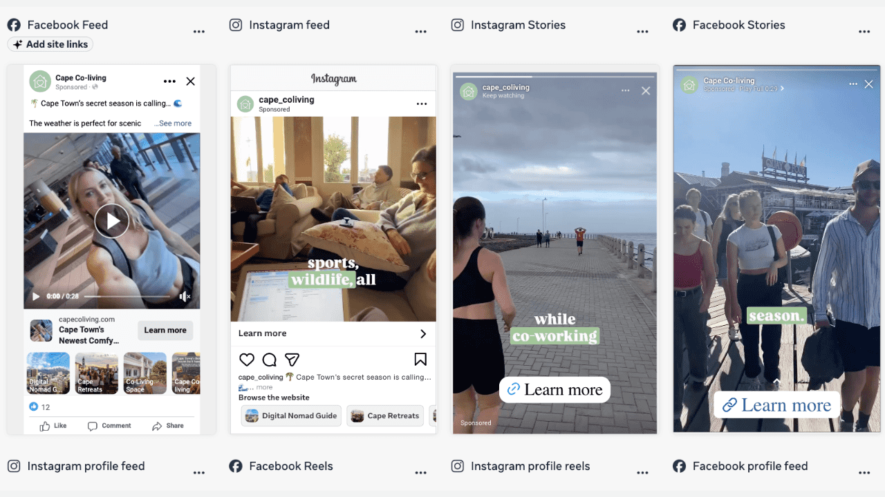(Screenshot of different types of travel ads on social media)
