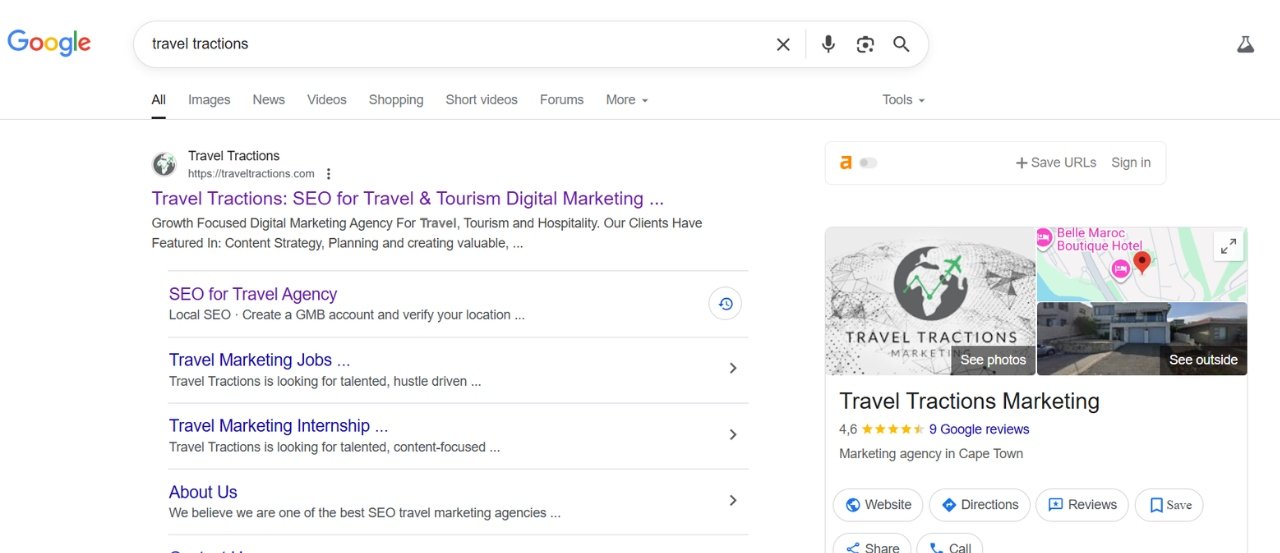 (Google My Business Profile of Travel Tractions as seen on Google SERPs)